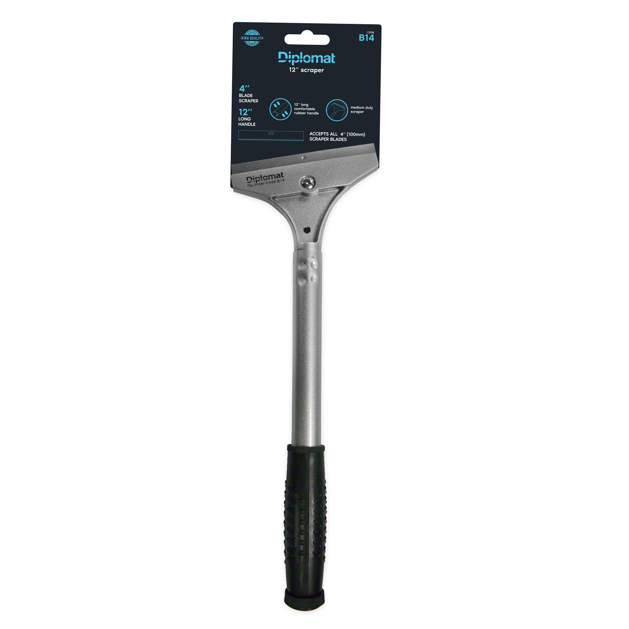 Diplomat B14 Long-Handled Scraper - Medium-duty scraper with a 100mm blade and a 300mm plastic handle for comfortable extended reach. Compatible with separately sold 100 mm replacement scraper blades.
